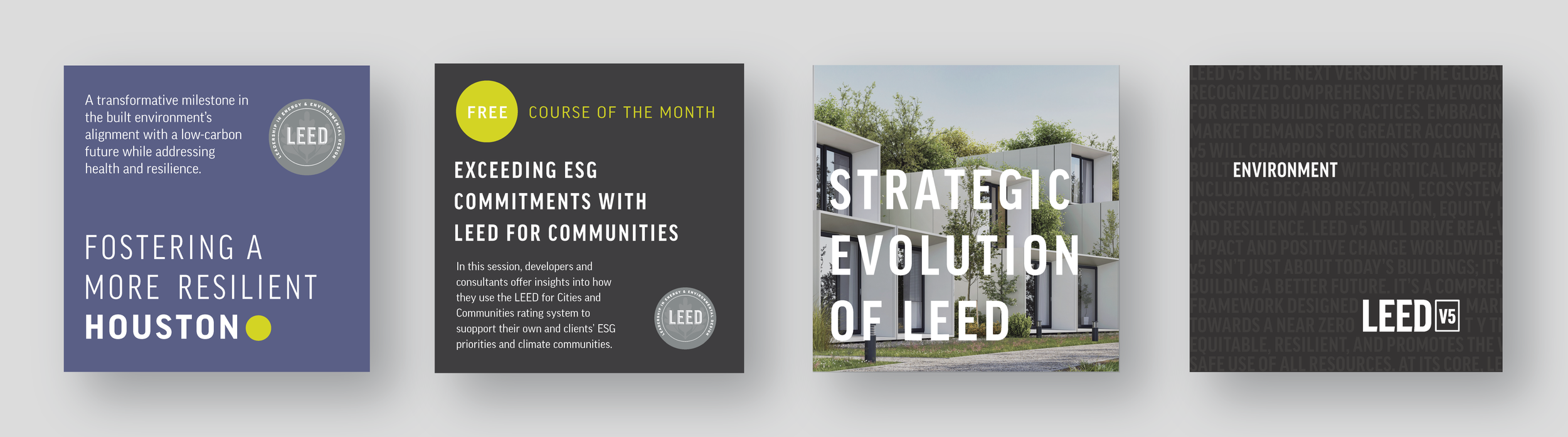 Our team partnered with the U.S. Green Building Council to create comprehensive brand guidelines for LEED v5—the latest evolution of the world’s most widely used green building rating system. The guidelines support USGBC’s mission to accelerate the transformation of the built environment and communicate the bold vision behind LEED v5. Designed to be flexible, scalable, and future-focused, the system helps unify messaging around decarbonization, quality of life, and ecological restoration—advancing LEED’s 25-year legacy of global leadership in sustainable design.